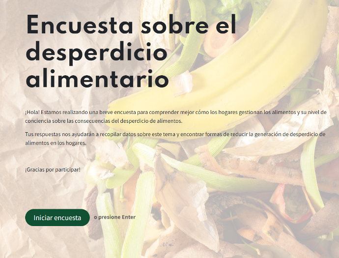 Se ha diseñado y compartido una encuesta para recopilar algunos datos sobre el desperdicio alimentario que se produce en la fase de la cadena de los hogares.