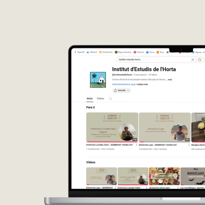 Para facilitar la identificación del proyecto por la ciudadanía, se ha diseñado un logo específico del proyecto "Sembrant Xarxes". Asimismo, se ha creado un apartado web para el proyecto, en el cual se ha alojado tanto la encuesta para la selección de las temáticas de los vídeos, como los propios vídeos elaborados.